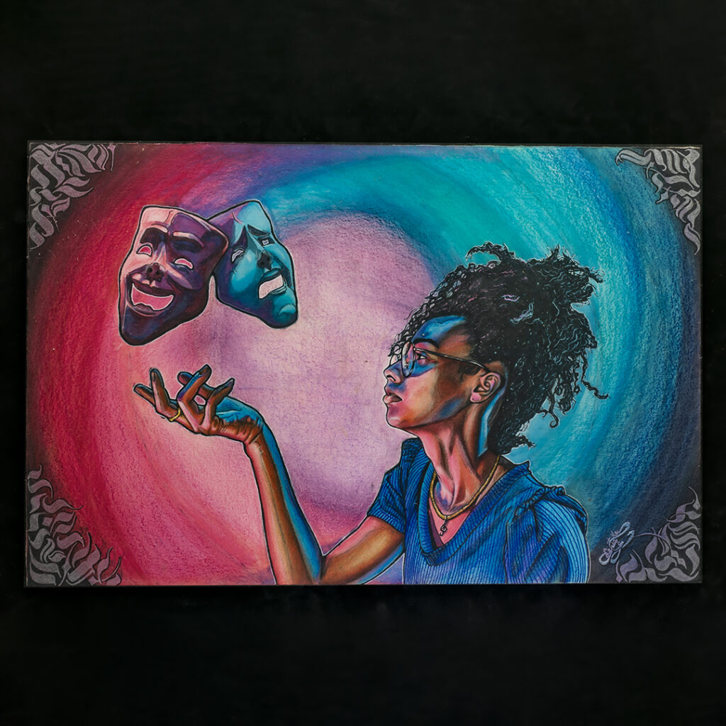 Desenho feito com técnicas mistas de marcadores e lápis sobre papel Canson.